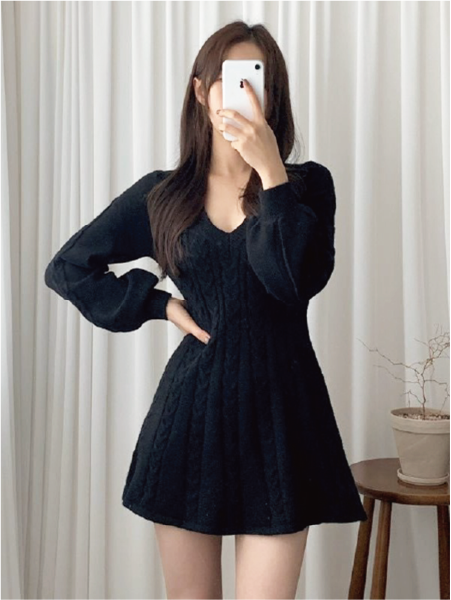 商品タグ:OP / ミニワンピース / 長袖 / 黒 / アイボリー / ピンク / ケーブルニット / 韓国 / 冬