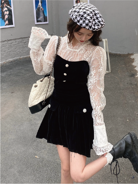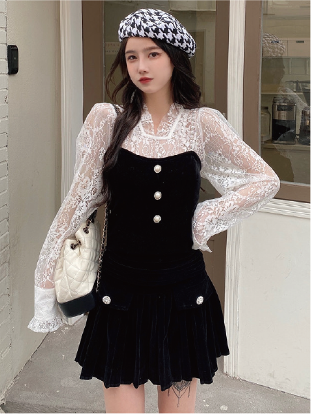 写真のベロアビスチェ付レーストップも販売しております。
